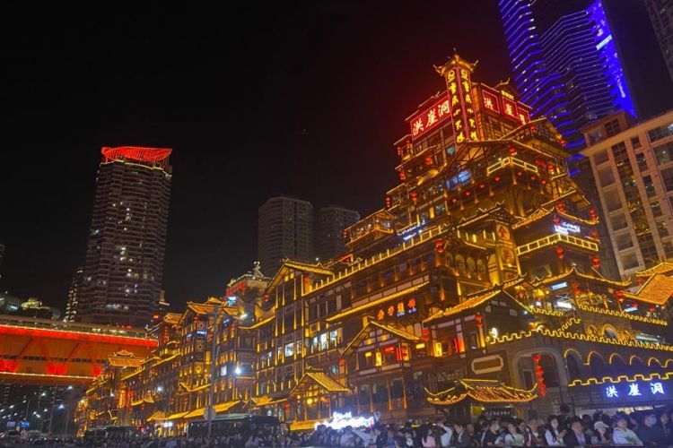 ★ 洪崖洞:巴渝传统建筑特色的“吊脚楼”风貌为主体,依山就势,沿江而建;