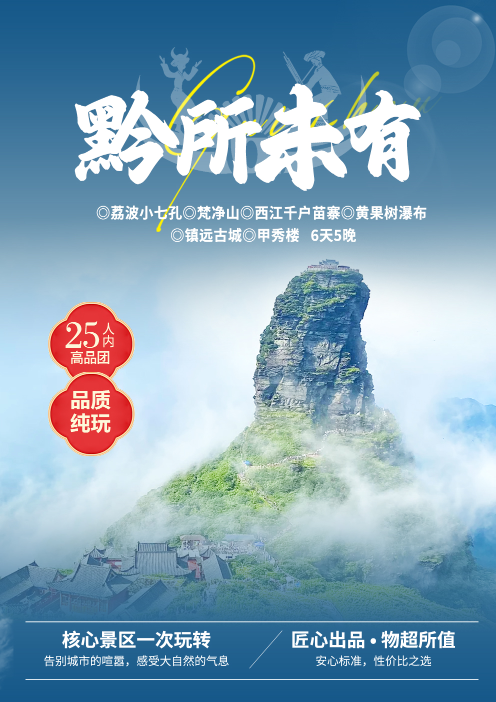 黔所未有-四钻版黄果树、西江千户苗寨、小七孔、梵净山、镇远古城、甲秀楼,逢花期赠送平坝樱花园